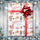 Imagens brilhantes de brinquedos de madeira decoram este papel de embrulho de Natal personalizado para crianças. As imagens incluem um cavalo balançante, um soldado de brinquedo, vários ornamentos de bolbos de árvores e espirais florais. Um estilístico "Feliz Natal" também está incluído, assim como vários campos de texto em cores correspondentes para você personalizar. Tudo é colocado sobre um fundo branco. Este é um papel de presente de Feriado bonito para avós ou pais se personalizarem para aquele garoto ou garota especial.