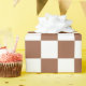 Arte digital abstrata de quadrados marrons e brancos em uma formação checkered.