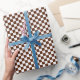 Um papel de envolvimento projetou com um teste padrão checkered marrom e branco no tamanho médio. Você pode mudar o marrom para uma cor diferente.