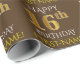 Este design de papel de embrulho apresenta uma mensagem como "FELIZ 16º ANIVERSÁRIO", com o "16º" a ter uma aparência falsa/imitação de ouro. Ele também apresenta um nome que pode ser personalizado e um fundo castanho. Talvez possa ser utilizada quando se dá presentes para o décimo sexto aniversário de alguém. [~Z0000133]