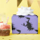 Este papel de embrulho é mostrado num papel cor roxo com uma impressão de bruxa festiva do Halloween. Personalize este item ou comprar como está. Imagem do stock