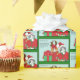 Irmãos de gato de mesa laranja e prateada estão se reunindo contra uma árvore de Natal do seu ser humano como o humano gosta de vestir-os em roupas de Natal todo ano
