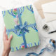 Um design de bule apresenta flores coloridas dentro. As matizes vibrantes de rosa, amarelo e verde se destacam, criando um contraste impressionante com o bule azul.