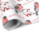 Um papel de embrulho de Natal feliz com uma redação personalizável que apresenta um pássaro de Natal Eurasiático pintado a aquarelas em um galho de neve que se banha em groselhas vermelhas cantando, "Feliz Natal", em um lindo roteiro escrito à mão sobre um fundo branco.