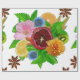 Padrão de abstrato sem costura. buquê fruta. laranja, kiwi, limão, romã, folha de menta, petúnia, rosa, anis estrelado, amêndoa, canela, fruta, presente, elogio, buquê, composição, feito à mão