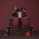 The deep, warm red paired with soft, subtle pinstripes creates a look that feels both timeless and comforting.