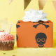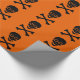 Papel de ondulação preto e laranja. Imagens do crânio preto e bósforos repetidas sobre um fundo de cor laranja-Halloween. Uma escolha perfeita para um presente de Halloween!