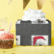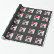 Embalagem exclusiva e deliciosa de presente de Natal para o amante de animais de estimação, apresentando um adorável Buldogue dormindo em um chapéu vermelho de Papai Noel contra um padrão de floco de neve de cinza suave. Foto original de Buldogue sem a cortesia de Esther Matheus.