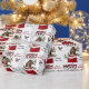 O padrão repetido neste belo papel de embrulho de Natal é uma imagem de um adorável cão de cachorrinho Basset Hound espiando-se de um saco de presentes de Natal vermelho e branco. Atrás dele está um sorvedouro de bagas sagradas e vermelhas. Um pássaro toucinho vermelho e preto está prestes a pousar. O texto da xadrez de búfalos vermelho e preto estilizado diz MERRY CHRISTMAS", e "Feliz ano novo" está em verde-escuro. Sua própria assinatura está em dois campos para você personalizar.