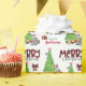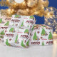 O padrão repetido neste belo papel de embrulho de Natal é uma imagem de um Cão-Pastor Australiano Azul Merle vestindo um chapéu de Papai Noel vermelho e branco. O cachorro se senta entre pacotes de presentes envoltos ao lado de uma árvore de Natal decorada. Um pássaro toucinho está pousando na árvore atrás dele. O texto de xadrez de búfalos vermelho e preto estilizado diz MERRY CHRISTMAS", e sua própria assinatura está em dois campos para você personalizar.