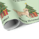 A ilustração original do desenho animado de Destei de um cão da raça Retriever, Ouro de cor amarela, bonito. O cachorro está parado por uma árvore festiva de Natal decorada com ornamentos vermelhos e amarelos, uma pérola branca e uma estrela amarela que é colocada no topo da árvore. Há também dois presentes embrulhados pela árvore e há uma área de texto personalizável que agora diz: "Feliz Natal!". A cor de fundo é verde-claro.