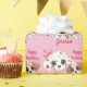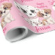 Um belo papel de embrulho de 6 de aniversário feliz Puppy Dog. Design de bonitinho de aquarela de filhotes de desenho animado em um bonito fundo rosa. Todo texto pode ser alterado para personalizar e personalizar com um nome e uma idade. Um presente de aniversário bonito para meninas em qualquer idade.