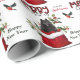 O padrão repetido neste belo papel de embrulho de Natal é uma imagem de um cão Pomerano preto a espreitar de um saco de presentes de Natal vermelho e branco. Atrás dele está um sorvedouro de bagas sagradas e vermelhas. Um pássaro toucinho vermelho e preto está prestes a pousar. O texto da xadrez de búfalos vermelho e preto estilizado diz MERRY CHRISTMAS", e "Feliz ano novo" está em verde-escuro. Sua própria assinatura está em dois campos para você personalizar.