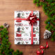 O padrão repetido neste belo papel de embrulho de Natal é uma imagem de um lindo cachorro preto Labrador Retriever espiando-se de um saco de presentes de Natal vermelho e branco. Atrás dele está um sorvedouro de bagas sagradas e vermelhas. Um pássaro toucinho vermelho e preto está prestes a pousar. O texto da xadrez de búfalos vermelho e preto estilizado diz MERRY CHRISTMAS", e "Feliz ano novo" está em verde-escuro. Sua própria assinatura está em dois campos para você personalizar. Certifique-se de ver as etiquetas de presentes correspondentes.