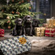 Encapsulamento de presente preto Labrador para o Natal ou doação de presente do amante do cão - cachorros pretos de laboratório com presentes azuis claros e arcos cor-de-rosa, um tiroteio de agulhas de pinho e flocos de neve para um tema de feriado - o design é de aproximadamente 3 polegadas, o melhor para pacotes de tamanho de caixa de camisetas -