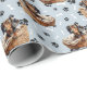 Um filhote de Dachshund preto e bronzeado adorável que se põe num cesto mais vestido é a característica do padrão neste papel de embrulho de presente de ocasião. O retrato está em meio a um padrão de estampas pretas e ossos brancos, e é repetido sobre fundo azul-prateado. Perfeito para qualquer amante de Cão Dachshund!