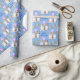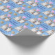 Dois adoráveis cachorros Corgi têm balões de ouro e um coração cor-de-rosa neste papel de embrulho de aniversário. Junto com as imagens de cachorrinho, está o texto personalizado em azul marinho. Tudo é colocado sobre um fundo azul médio. Bonita!