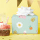 Café da Manhã Bonito ou Brunch em fundo de menta com torradeira, fatia de pão, croissant, cereais, abacate, sumo de laranja, maçãs e ovos. Levante-se e brilhe!
