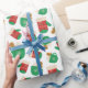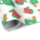 O "Café Natal Latte & Gingerbird Festive Glove Wrapping Paper" apresenta luvas festivas e latas a vapor com biscoitos de pão de gengibre, perfeitos para embrulhar presentes que trazem calor e conforto de férias.