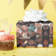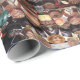 Uma caixa de chocolates sortidos desenhados em papel de embrulho