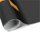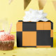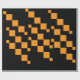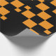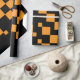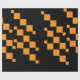 Uma bela caixa de presentes de Natal embrulhada adornada com um arco vermelho vibrante, colocada contra um pano de fundo festivo de galhos de pinus verdes, pinecones e ornamentos coloridos. O único papel de embrulho preto e laranja, que marca a cor, acrescenta uma reviravolta moderna a esta tradicional cena natalícia, perfeita para doar durante a época festiva.