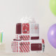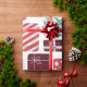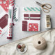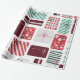 Um padrão perfeito e alegre com várias caixas-presente embrulhadas em vermelho, verde e branco com diferentes padrões, como listras, bolinhas e cheques. Cada presente é amarrado com um arco delicado, criando uma atmosfera festiva e alegre. A mistura de formas, cores e padrões adiciona um toque lúdico, mas harmonioso, capturando a essência das celebrações de feriado e doação de presentes.