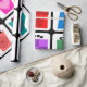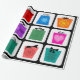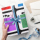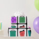 Condecoração de caixas de presente coloridas em quadrados pretos sobre fundo branco