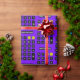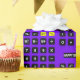 Calculadora roxa com texto de aniversário feliz e botões pretos de teclado.