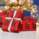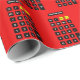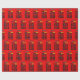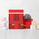 Calculadora vermelha com texto de aniversário feliz e botões pretos de teclado.