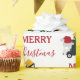 Uma bela ilustração de um caminhão de lixo de reciclagem de Natal vestindo um chapéu de Papai Noel e decorado em luzes de Natal com palavras "Feliz Natal". Um papel de embrulho de Natal ideal para entusiastas de caminhão de lixo grandes ou pequenos, meninas ou meninos.