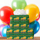 Legal papel de embrulho de festa de aniversário para veículos de construção para uma criança que ama caminhões de betão amarelo em papel de embrulho de presente verde. Design de veículo divertido para um menino que ama carros e caminhões. Personalize com o nome do seu filho e FELIZ ANIVERSÁRIO em branco sob a fita de precaução em preto e amarelo.