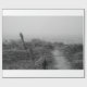 Um pequeno caminho para a praia em neblina grossa. Fotografia em preto e branco.