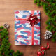 Papel De Presente Camuflagem Azul Branco Vermelho