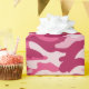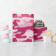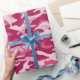 Este papel de embrulho de camo feminino apresenta um padrão de camuflagem em tons de rosa escuro e rosa pálido.