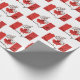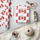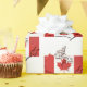 Papel de embrulho Patriótico CANADIANO mostrando a LINHA MAPA combinada com a bandeira MAPLE LEAF do CANADÁ com efeito gravado. Ideal para comemorações nacionais, Aniversário e Natal, e para qualquer ocasião em que seja necessário um papel de embalagem na moda, patriótico. (A costura é exibida corretamente.)