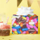Praspermas doces de cor brilhante são uma forma excelente de começar a festa para este papel especial de embrulho de aniversário.