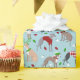 Cães de Natal bonitos em roupas festivas de férias. Os galgos italianos com muitas cores casaco vestem chapéus de Santa, galhadas, suéteres em fundo vermelho, rosa e azul claro com ornamentos espalhados em papel embrulhado.