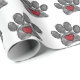 Impressão de pata de cão e aquarela cardíaca em vermelho, preto e cinza. Rolos de papel de embrulho de presente personalizados. Ideia de presente para amantes de cães.