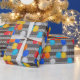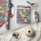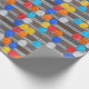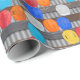 Este papel de embrulho tem um padrão de capacetes de obra de trabalhador da construção. Muitos capacetes diferentes pendurados em uma parede de metal ondulado, exatamente como em um canteiro de obras. Você pode aumentar ou diminuir o tamanho deste padrão neste papel de embrulho. Isso faz um ótimo embrulho para o ambiente de trabalho ou para embrulhar brindes promocionais de empresas de construção.
