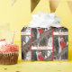 Cardeal com boné de inverno em uma árvore com texto Feliz Natal.