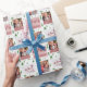 Papel de embrulho fotográfico, personalizado com 2 das suas fotografias e selos de correio decorados com árvores de natal, palavras ocas e festivas (Feliz Férias, Feliz Natal e Feliz e Brilho). Dois dos carimbos têm suas fotos, exibidas como um retrato vertical e um quadrado, em um padrão repetido ao longo do comprimento do papel de embrulho. Os selos de postagem sentam-se sobre um padrão geral de árvores de natal. Por favor, procure na minha loja designs semelhantes, com e sem fotos.