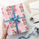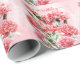 Papel De Presente Carnações rosa e borboletas Feliz Aniversário