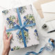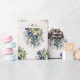 Ilustração botânica antiga de flores-belhas em azul, roxo e branco.
