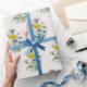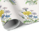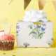Ilustração botânica antiga de flores-do-mar em azul, amarelo e branco.