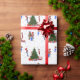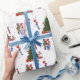 Carolers and Christmas Trees Wrapping Paper design apresenta um padrão de caroleiros festivos ao redor de uma árvore de Natal e fotografados sobre um fundo branco com manchas verdes e vermelhas. Muito festivo e divertido!
