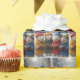 Four mice, dressed in colorful coats and hats, happily sing outdoors as snowflakes fall around them, creating a charming winter scene