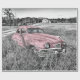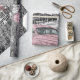 Um incrível vintage cor-de-rosa, carro clássico em frente a um fundo preto e branco, permite um design único para uso em desacoplamento, artesanatos de papel ou encapsulamento de presentes. Consulte a visualização da imagem "costura" para verificar se ela é aceitável.