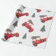 Papel De Presente Carro Vermelho de Feriado e Árvore de Natal