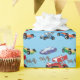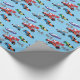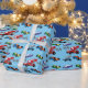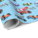 Papel de envolvimento perfeito para o aniversário das crianças. O papel tem carros de corridas e bandeiras checkered.