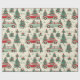 O papel de embrulho colorido mostra carros brancos cercados por árvores de Natal decoradas, estrelas e flocos de neve, criando uma atmosfera de feriado deliciosa perfeita para embrulhar presentes.